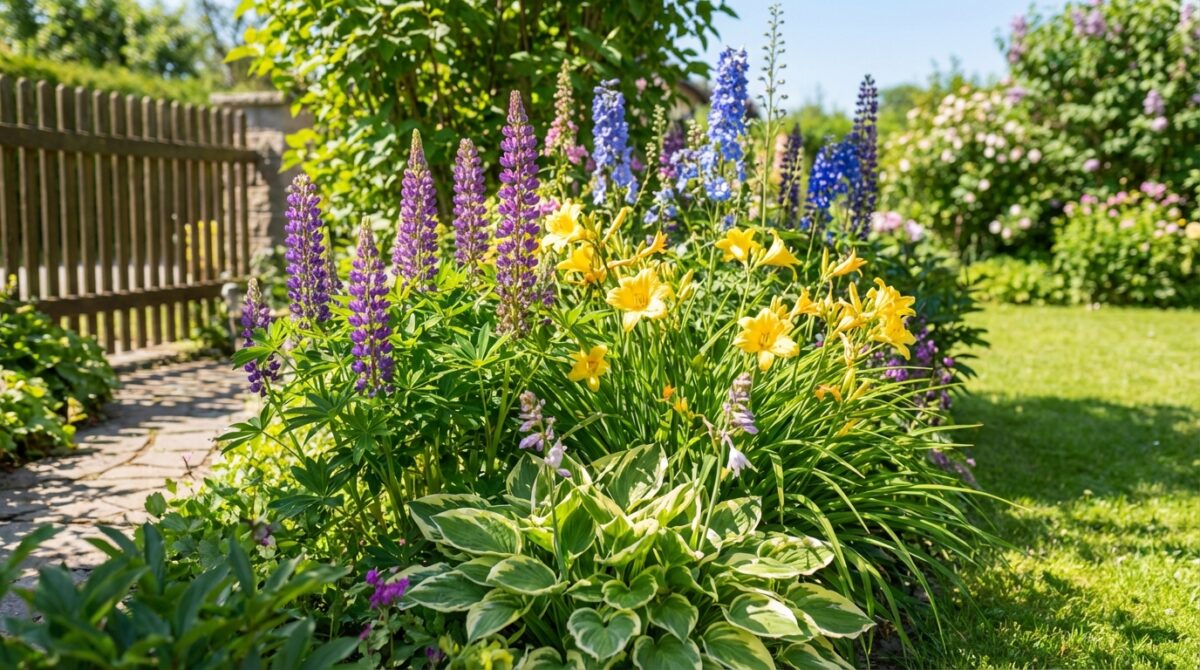 - Hemerocallis: Große, farbenfrohe Blütenbüschel, die den ganzen Sommer über blühen.